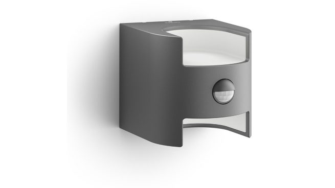 Ez az antracitszürke Philips Grass kültéri, LED-es fali lámpa tartós alumíniumöntvényből készült, és mozgásérzékelővel rendelkezik. A kivágott kocka formájú fényforrások két nagyszerű meleg fehér fénysugárral teljesen bevilágítják a falat.