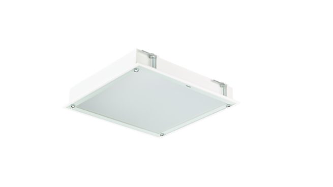 ISO 14644-1 Air cleanness Class 1, 600x600 mm, Acél, Fehér, Közlekedési fehér (RAL9016), Tápegység (be/ki), 4000 lm, 41 W, 98 lm/W, 4000 K, (0.39, 0.38) SDCM <3, CRI>90, UGR19, Széles sugárzási szög, Átlátszó, Üveg, IP65 | Porbejutás ellen védett, vízsugár ellen védett, IK09 | 10 J, I. biztonsági osztály, 3 pólusú gyorscsatlakozós aljzat